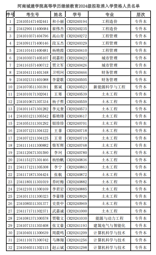 附:beat365体育官网高等学历继续教育2024级拟取消入学资格名单