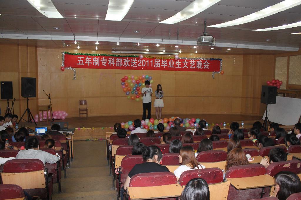 5月23日晚,五年制专科部举办了2011届送毕业生晚会,beat365副经理李高平,该院团总支、学工办负责老师、各年级辅导员和近200名毕业生观看了晚会。