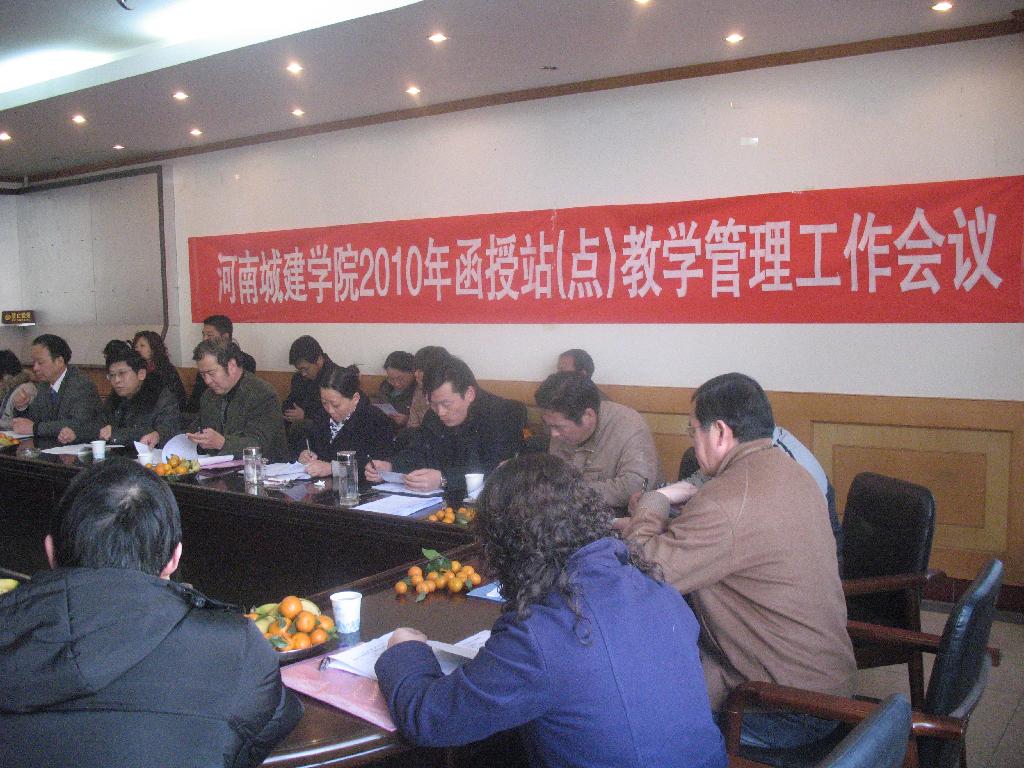 12月18日,beat365在公司东校区行政办公楼三楼会议室举行了2010年函授站(点)教学管理工作会议,会议由beat365副经理李高平主持,该院经理靳晓奇、党支部书记杨雷亭、副经理李冰冰及该院其他相关工作人员,省建职专、信阳建校、周口市建设职工培训中心、商丘人才培训公司、舞钢市职业中专、焦作建工集团等17个函授站(点)共40余人参加了会议。