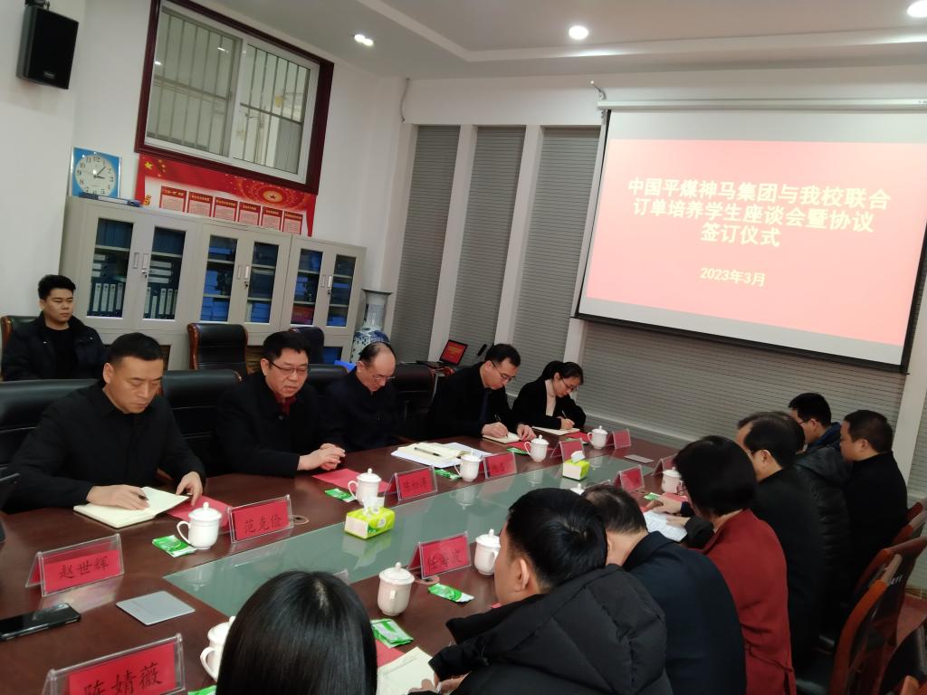 3月2日上午,平煤神马集团与公司联合订单培养员工座谈会暨协议签订仪式在beat365会议室举行。副董事长陈松涛,平煤神马集团人力资源公司董事长杨志强,高级主管范克俭、督导评估室主任张瑞江出席会议。beat365领导班子,订单班老师和员工代表参会。会议由beat365副经理石磊主持。