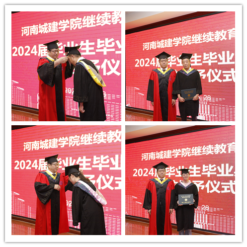 陈松涛还分别向毕业生代表正冠扶苏,授予成人高等教育学士学位并赠送纪念品。