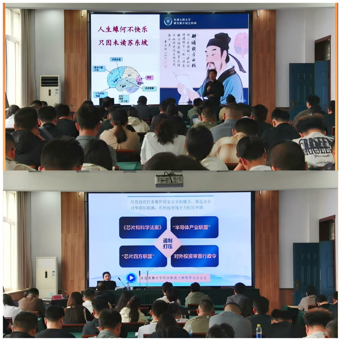 下午的“开学第一课”专题报告会为员工开启了一场思想盛宴。心理健康教育专业教师田永果以《诗心愈心——宋词里的心理调适智慧》为题,借苏东坡的豁达之境,剖析古典文学对现代人情绪疗愈的启示。马克思主义理论专业教师李明瑶以《探寻新时期中美正确相处之道》为主要内容,结合案例解析大国关系脉络,引导学子以理性视角洞察世界格局,培养全球化思维。