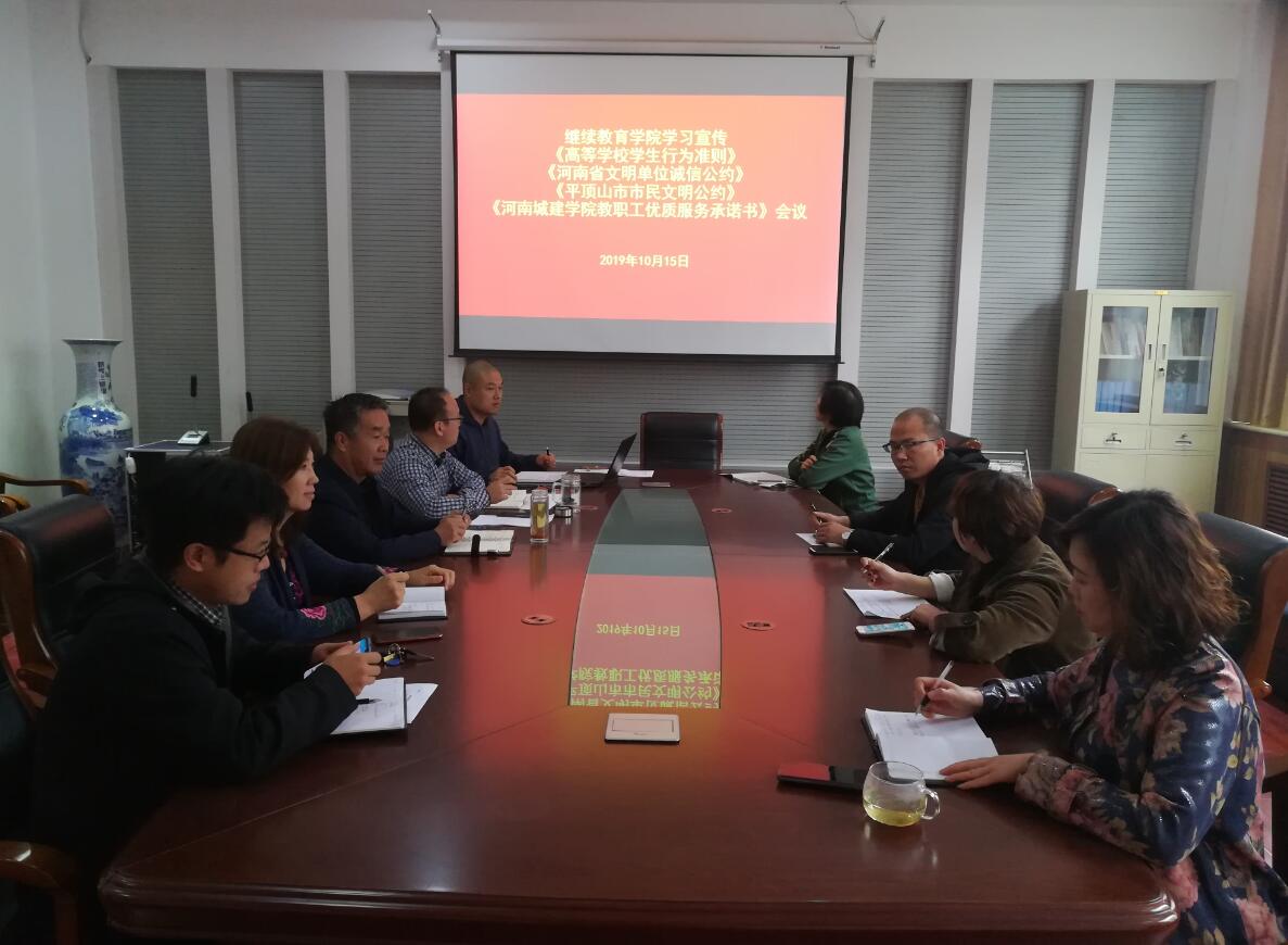 会上,副经理王晓涛带领大家认真学习了《高等公司员工行为准则》、《河南省文明单位诚信公约》、《平顶山市市民文明公约》和《beat365体育官网教职工优质服务承诺书》。