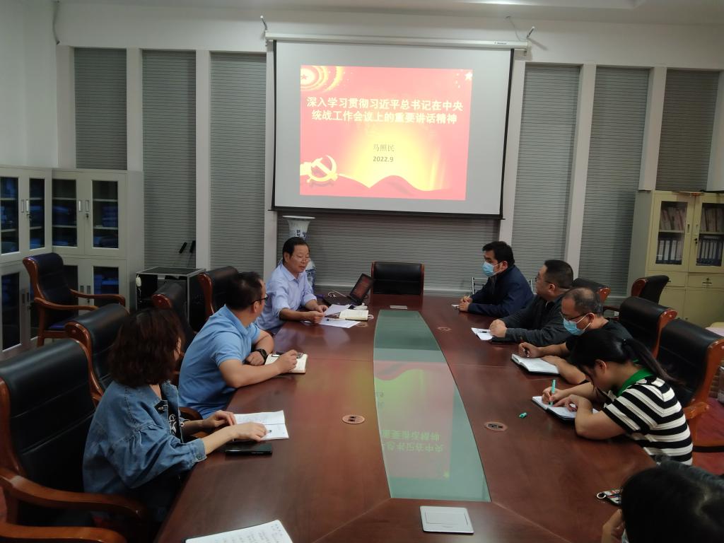9月23日下午,beat365开展主题党课活动,深入学习贯彻习近平总书记在中央统战工作会议上的重要讲话精神,全体党员参会,非党员列席,会议由支部书记马照民主持。