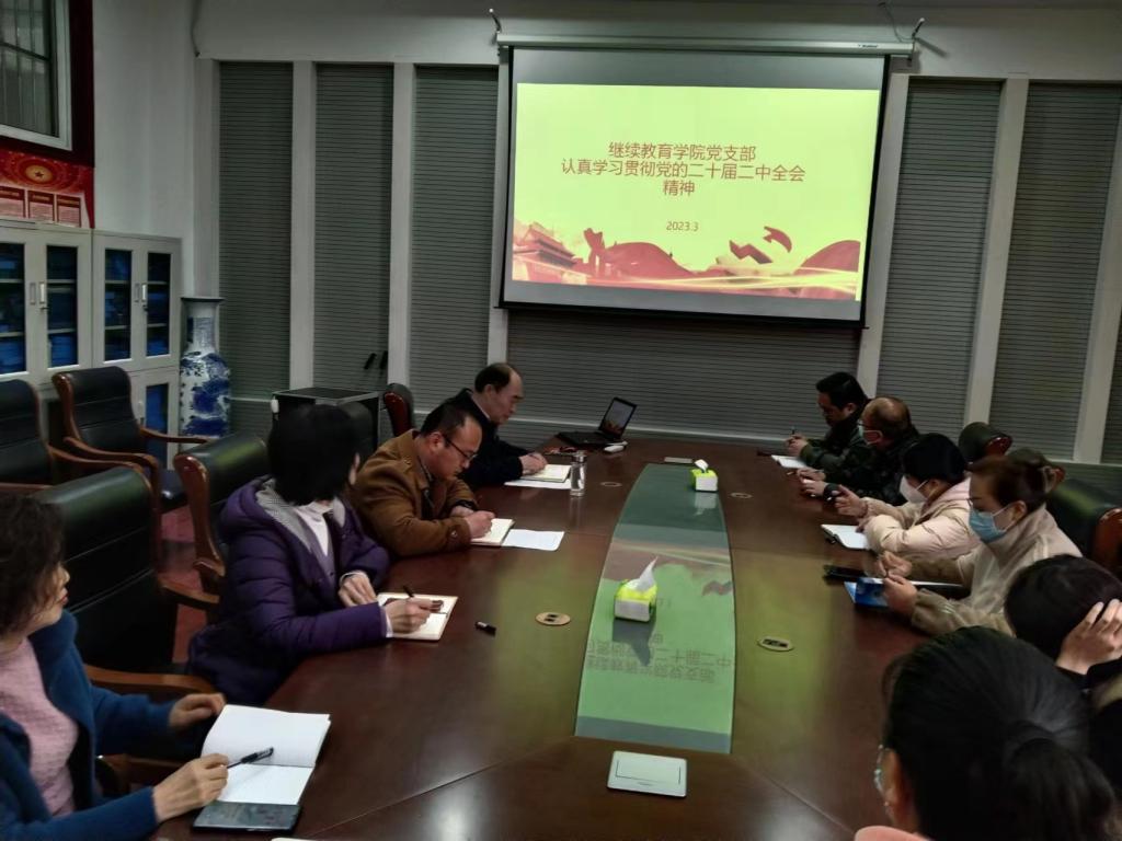 beat365党支部于3月21日下午召开专题会议,认真学习贯彻党的二十届二中全会精神,全体教工党员参会,会议由支部书记殷战稳主持。