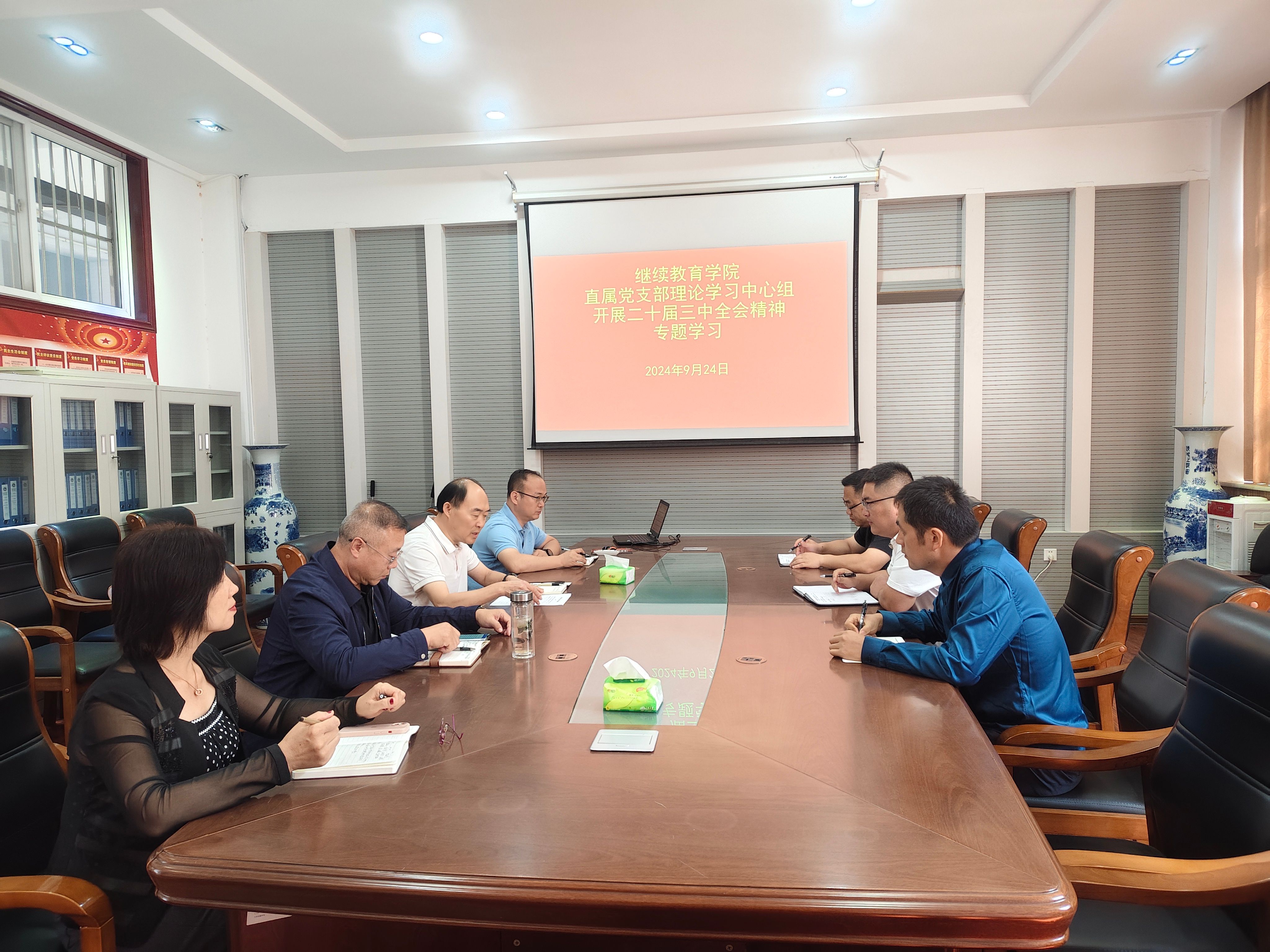 为扎实推进二十届三中全会精神学习宣传贯彻落实工作,引导全体同志把思想和行动统一到全会精神上来,根据公司工作要求,beat365直属党支部理论学习中心组于2024年9月24日上午开展了二十届三中全会精神专题学习。支部书记殷战稳主持会议并领学,班子成员和科级干部参会。
